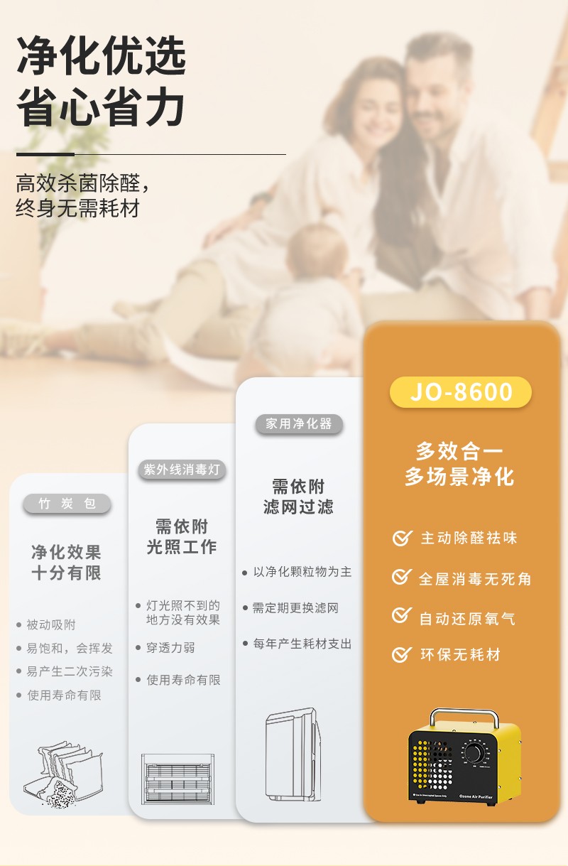 敬诚IONKINI臭氧空气净化器JO-8600系列介绍(家用版JO-8600+车载版JO-8600D)