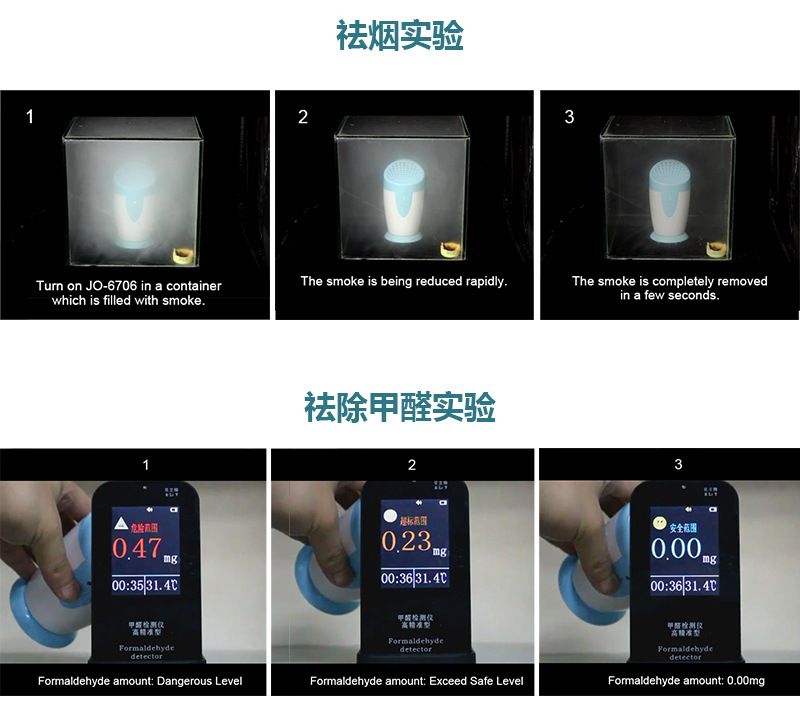 通过释放10mg/h臭氧和380万高浓度负离子,它能净化多种空气污染物: