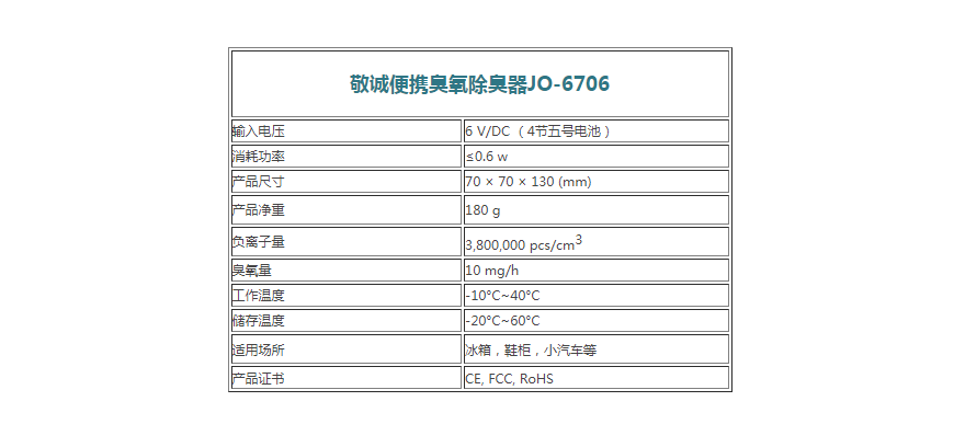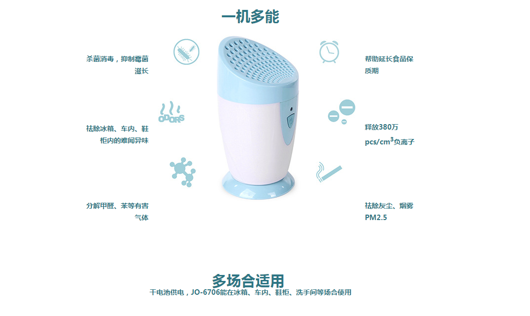 便携臭氧除臭器JO-6706是广州敬诚科技电子有限公司研发的多功能净化产品。