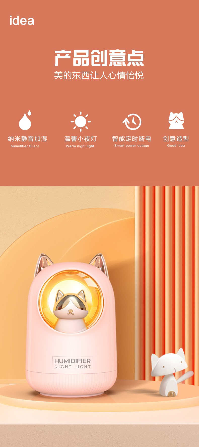 可爱宠物静音超声波雾化加湿器 JO-A102