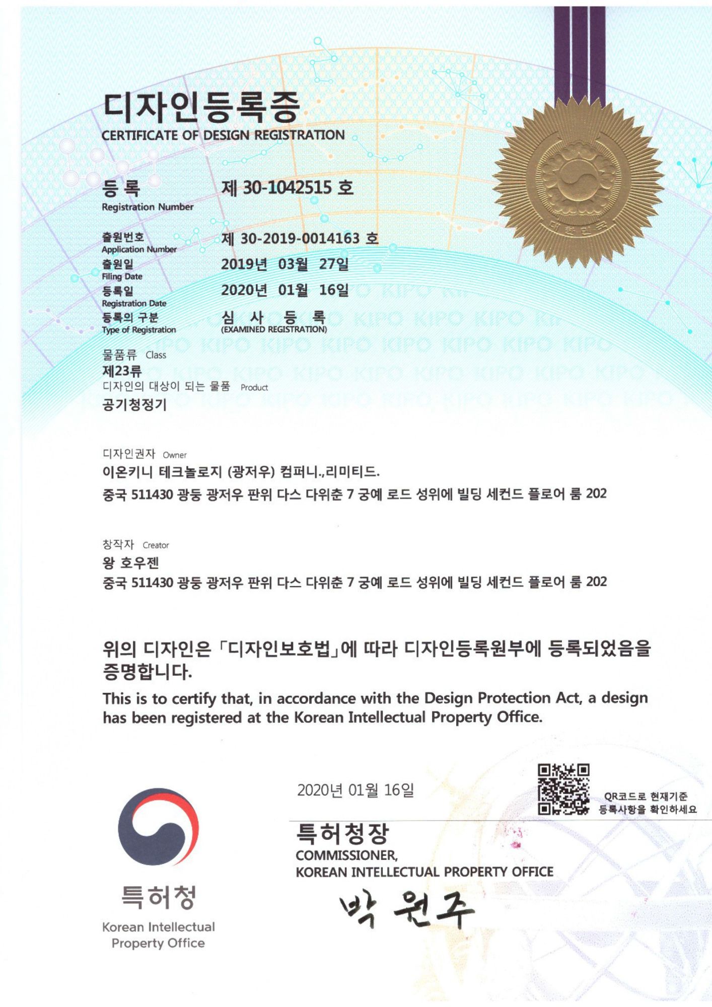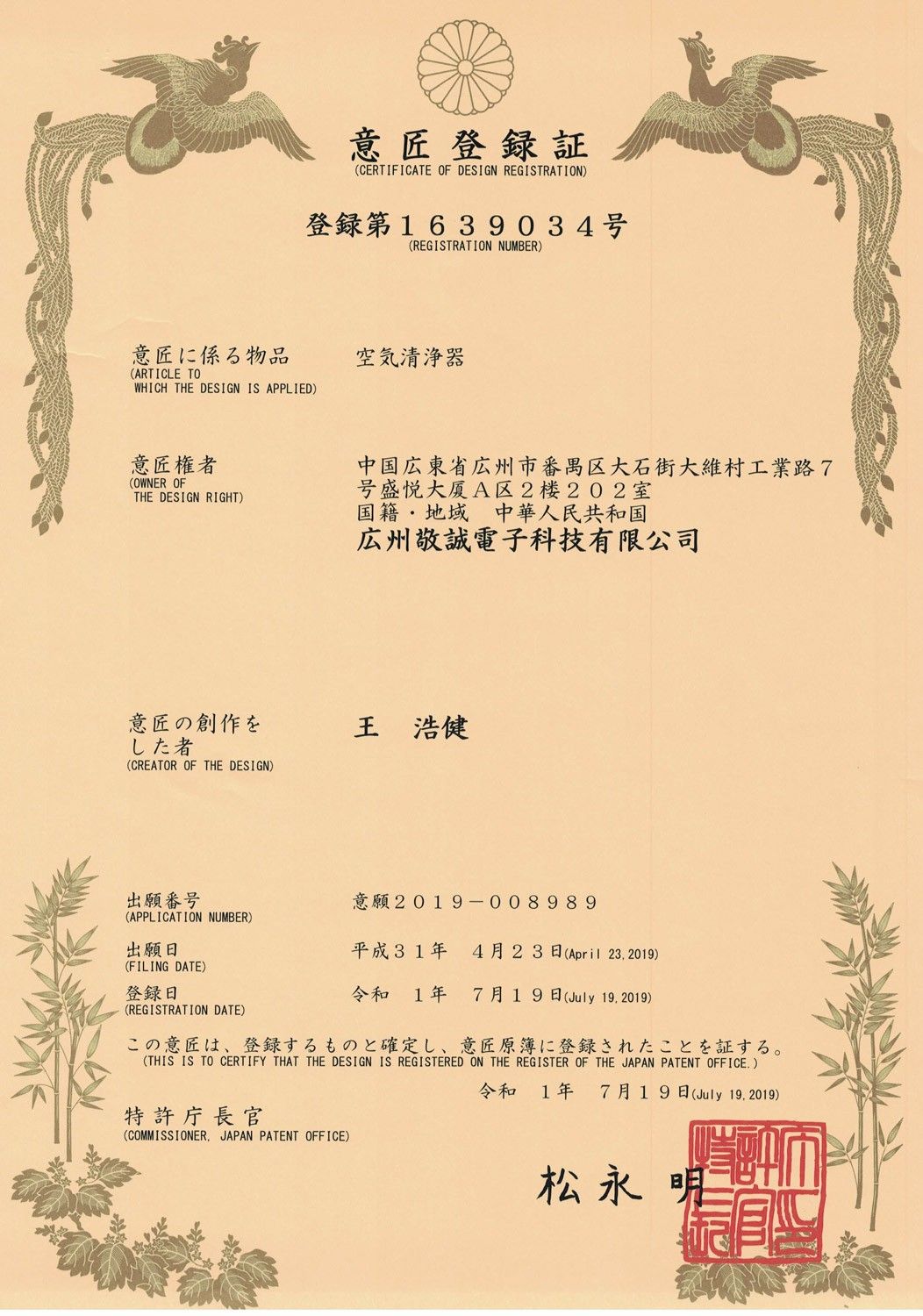U.S. PatentEuropean PatentChina Design Patent