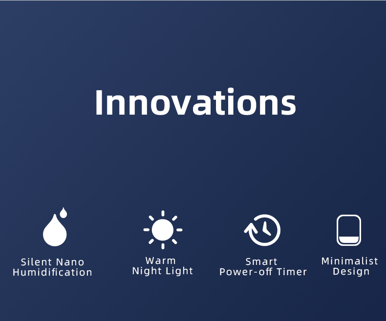 Dual mist output & Dual mode timer Continuous / Intermittent humidifying mode Smart power-off timer