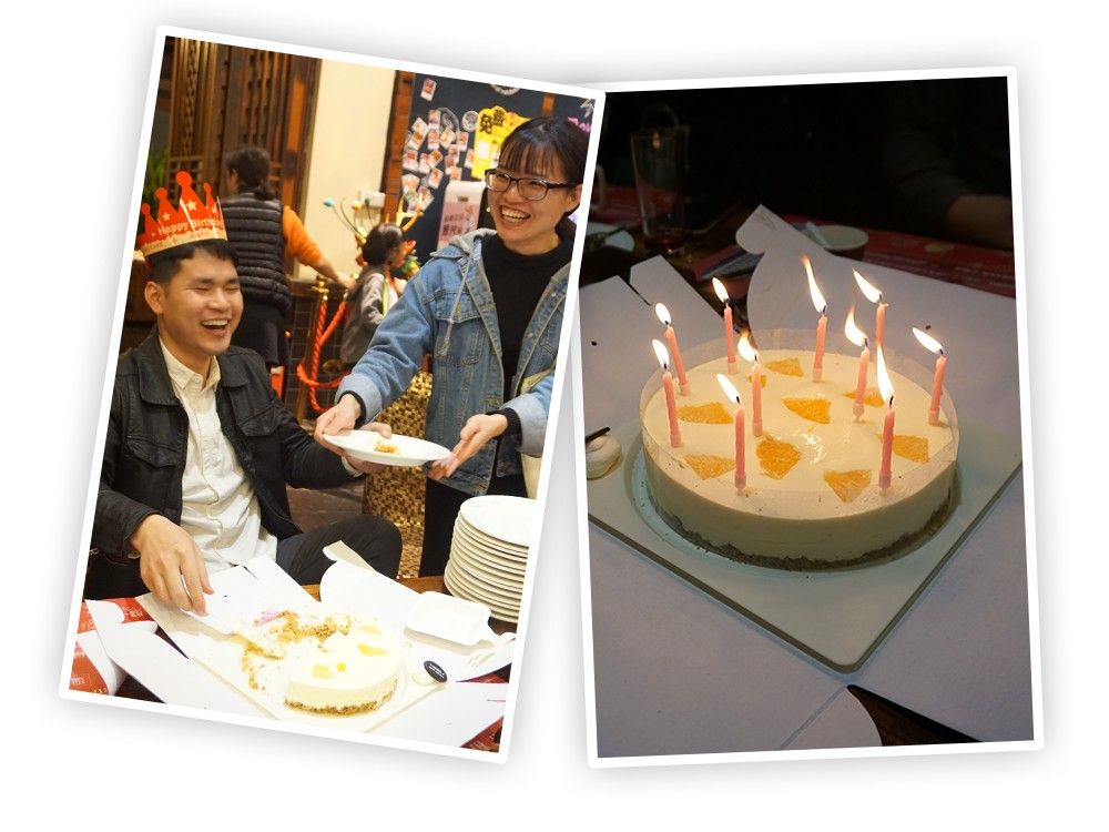 Gathering before having our Spring Festival holiday and celebrating our teammate Jun's birthday![]()