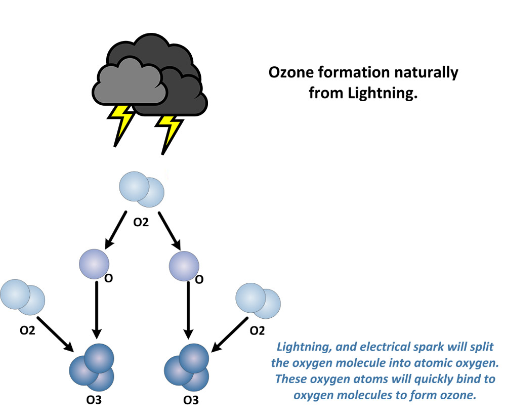 Ozone occurs quite readily in nature, most often as a result of lightning strikes that occur during thunderstorms. In fact the "fresh, clean, spring rain" smell that we notice after a storm most often results from nature’s creation of ozone.