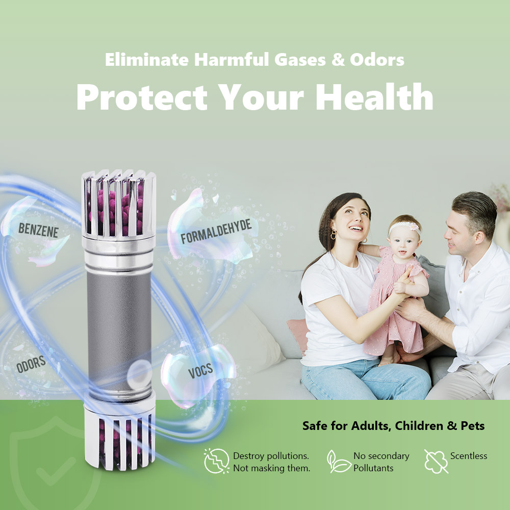 Purple pellets inside the bar gradually turns brown as they are decomposing and destroy harmful VOCs & odors in the air.