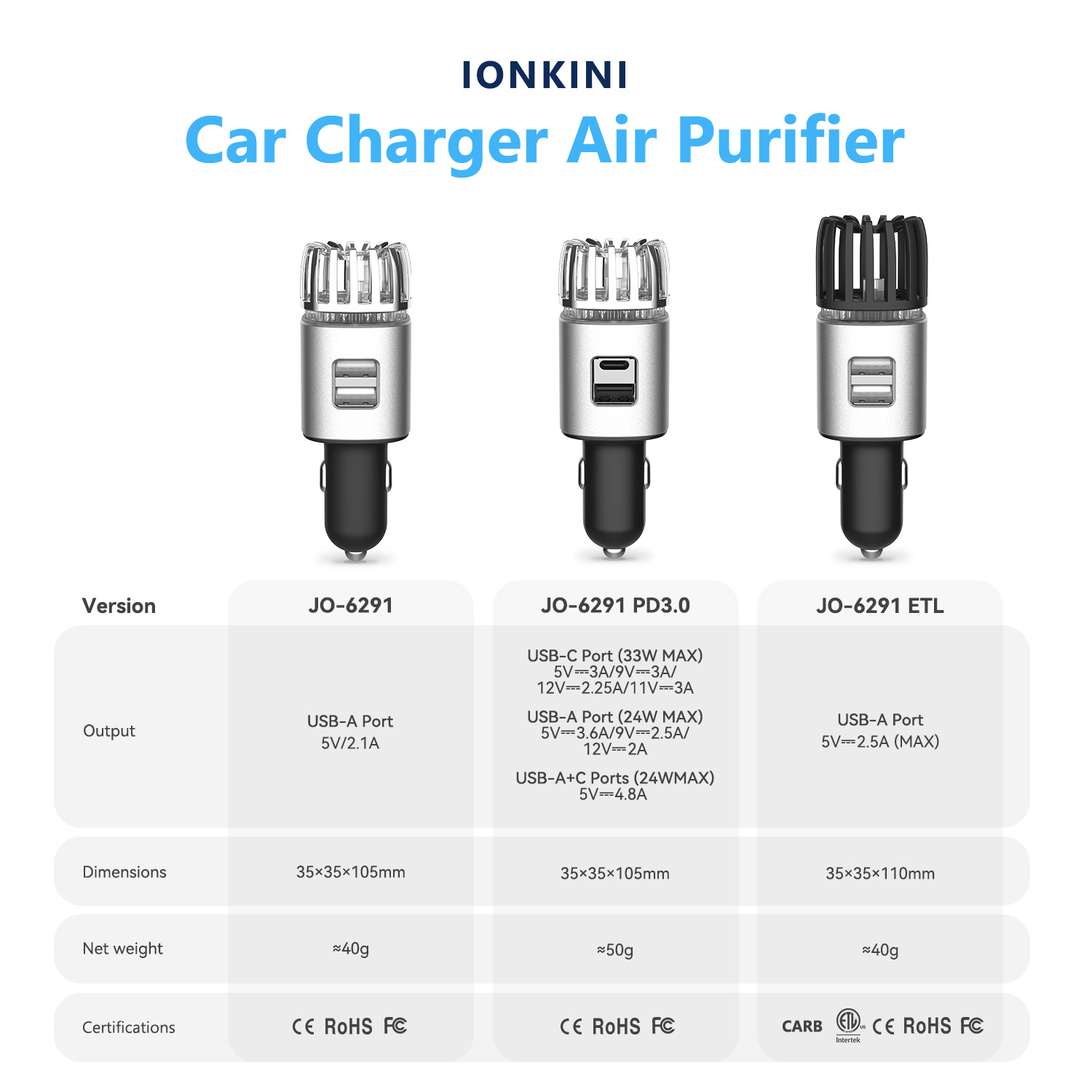 2-in-1 Car Charger Air Purifier JO-6291 ETL Version