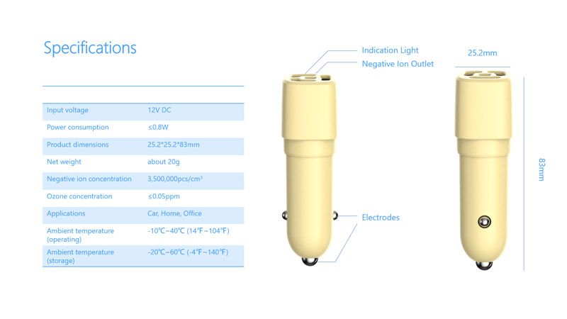 | Negative ion output | 3,500,000pcs/cm3 |