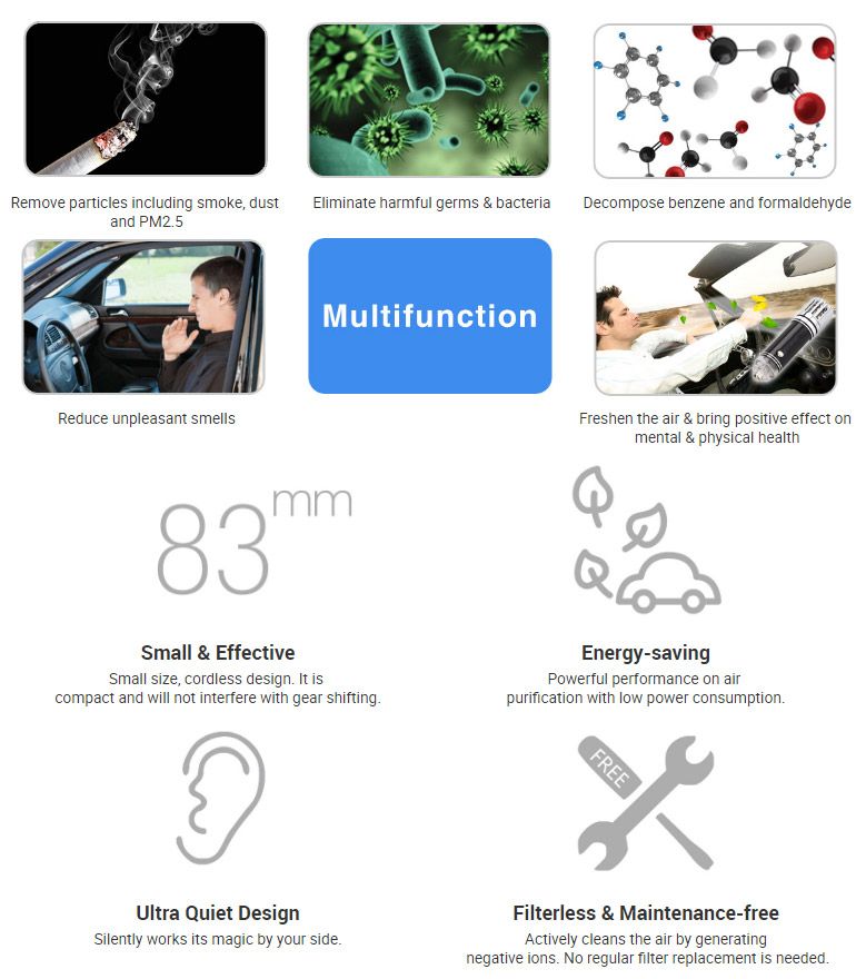 | Product | Ionkini Mini Car Air Purifier JO-6272 |