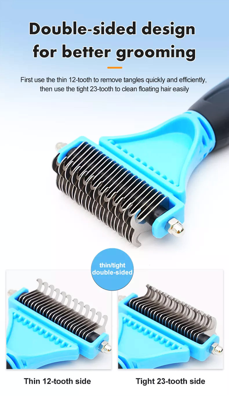 - Two Sided Grooming Tool: Deshed with the 23 tooth side of the comb and dematt with the 12 tooth side. Grooming tool perfert for dematting, detangling, or shedding.