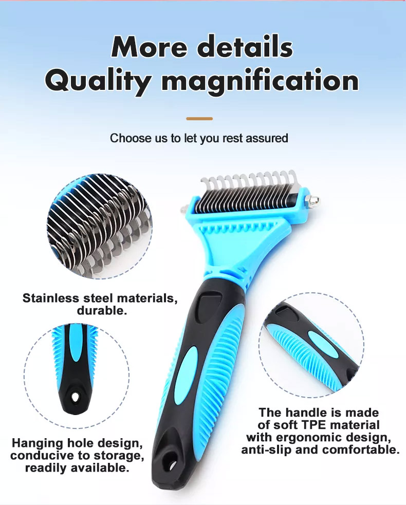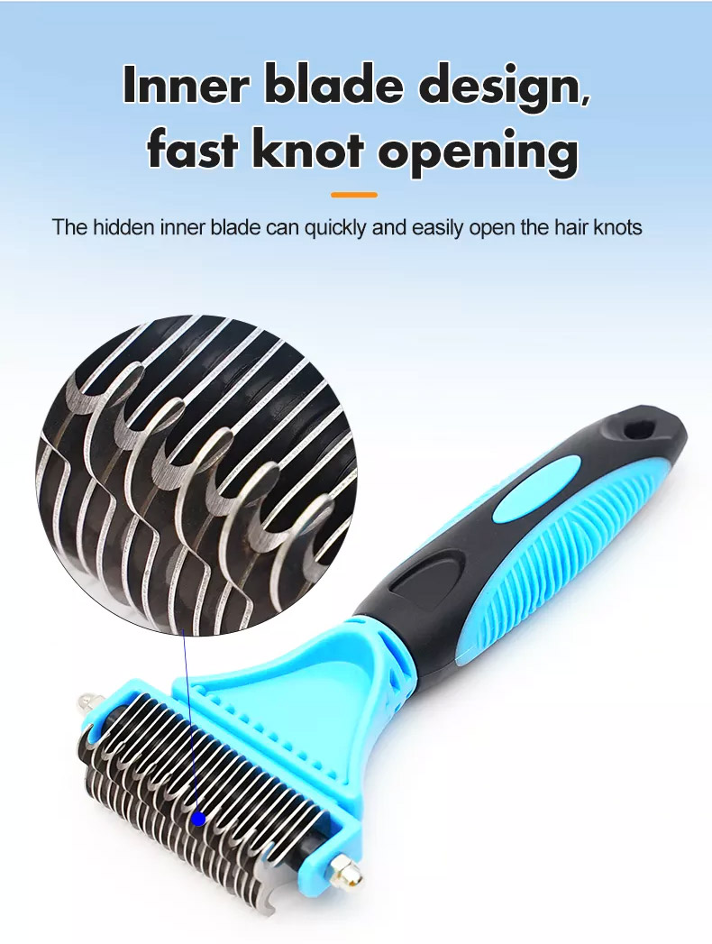 JP-DA02 Pet Deshedding Brush - Double-Sided Undercoat Rake for Dogs & Cats - Shedding Comb and Dematting Grooming Tool