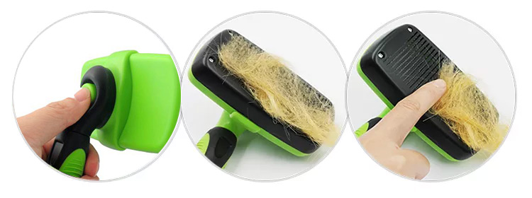 Step2: Grooming your pet then push the button,the bristles retracted into brush.