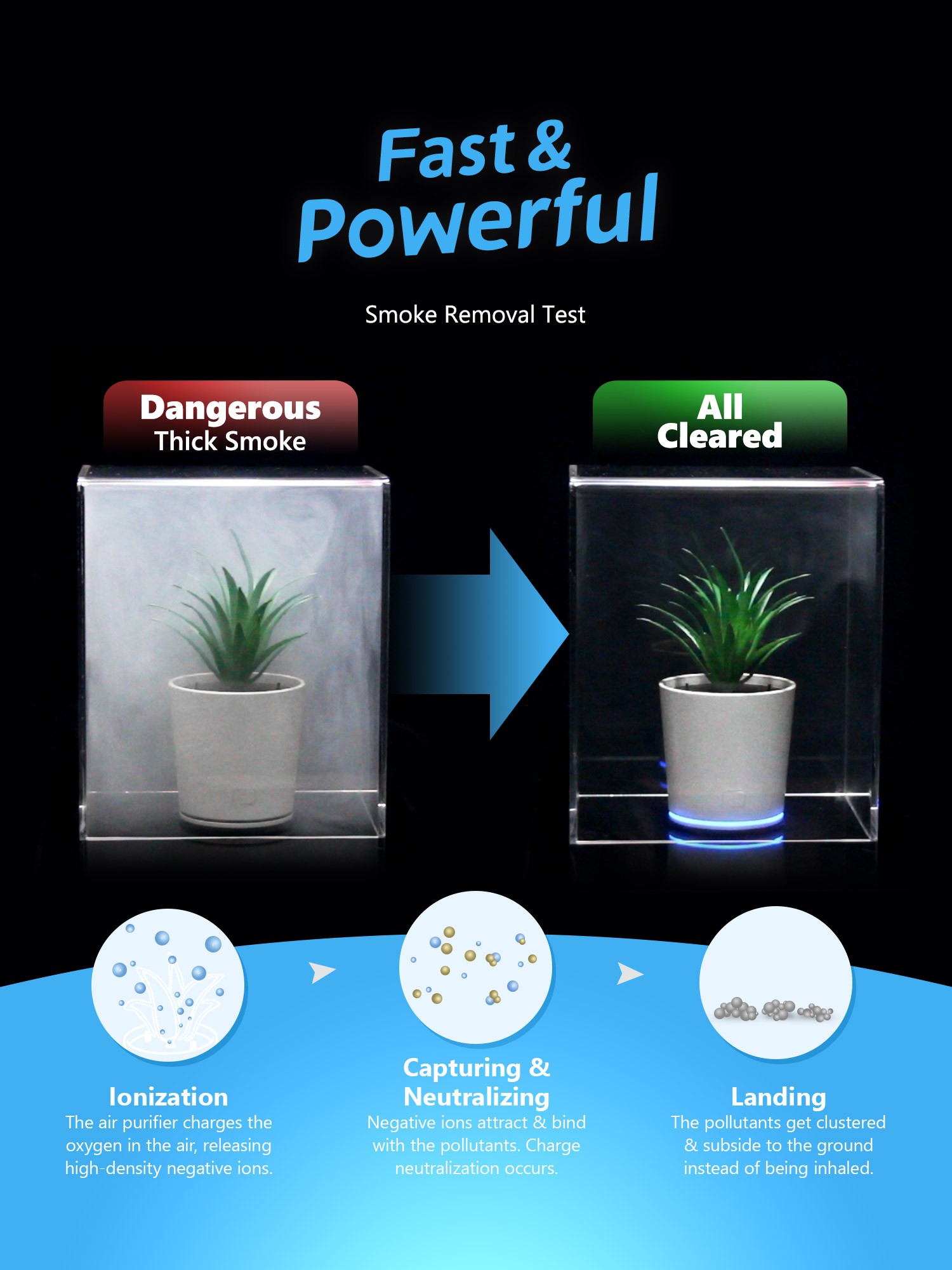 Watch the smoke vanish - real-time purification in action.