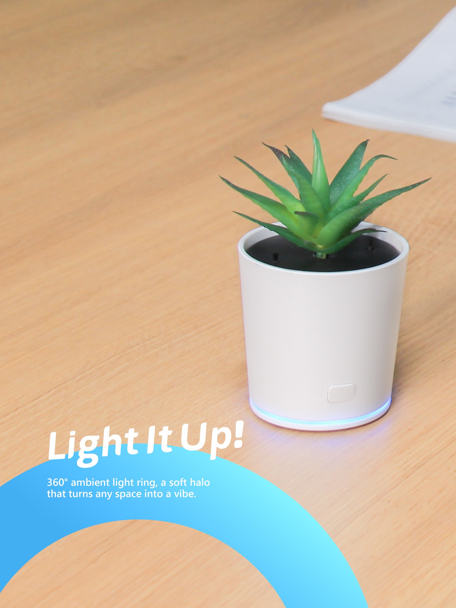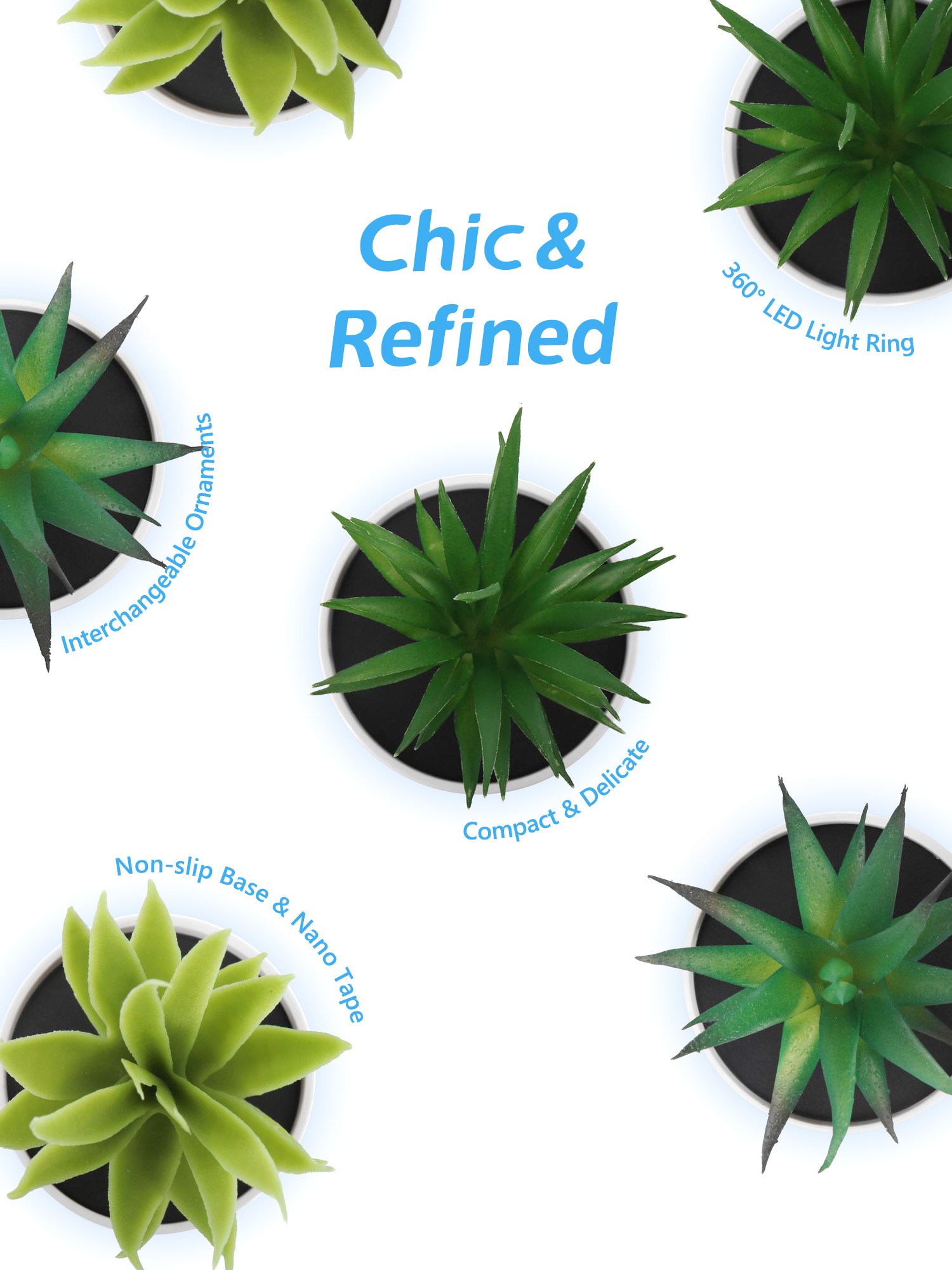 Interchangeable decor | 360° LED light ring | Palm-sized | Non-slip base & nano tape