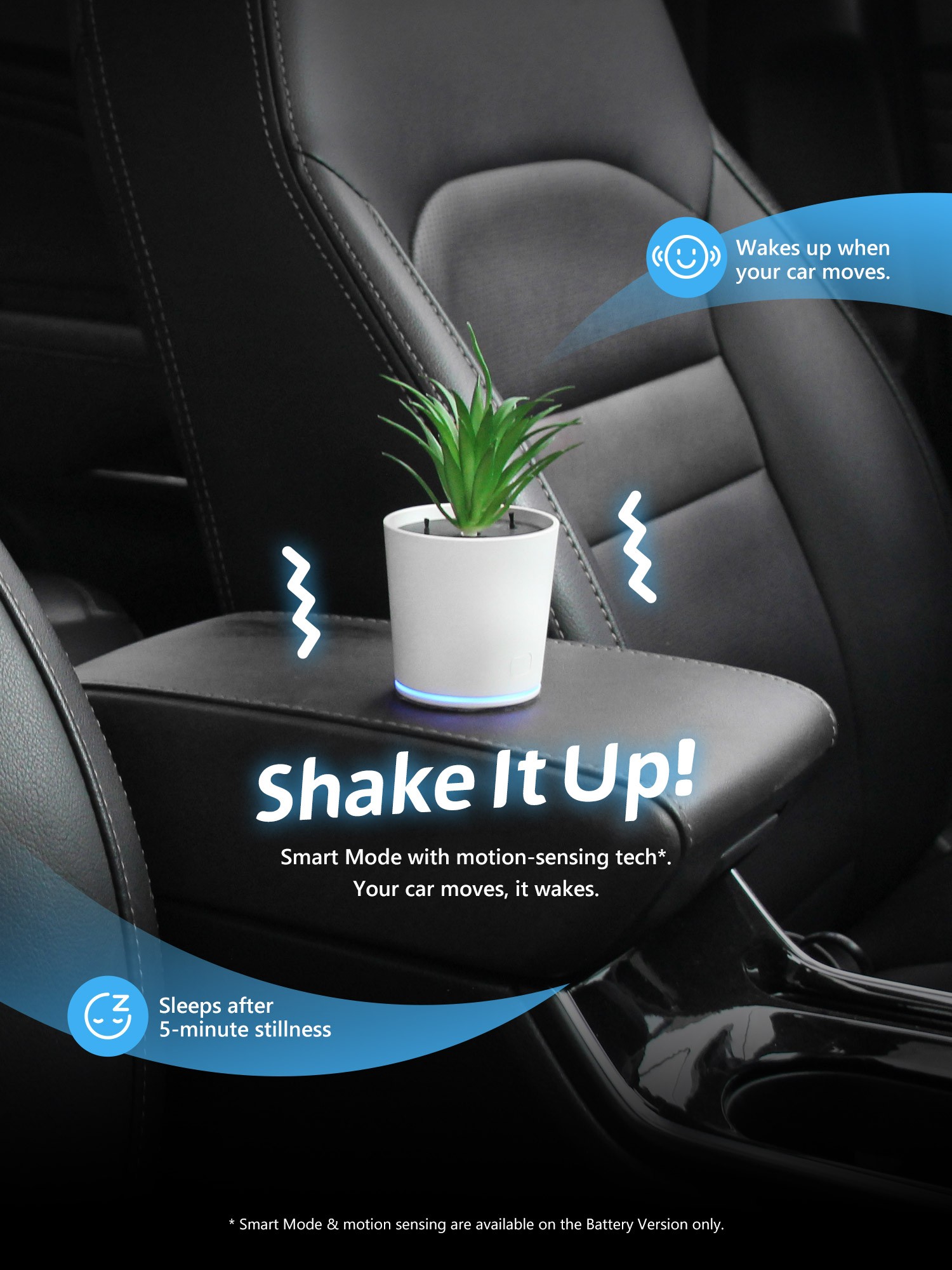 - Smart vibration-sensing auto on/off (Battery version only) with up to 27-day battery life