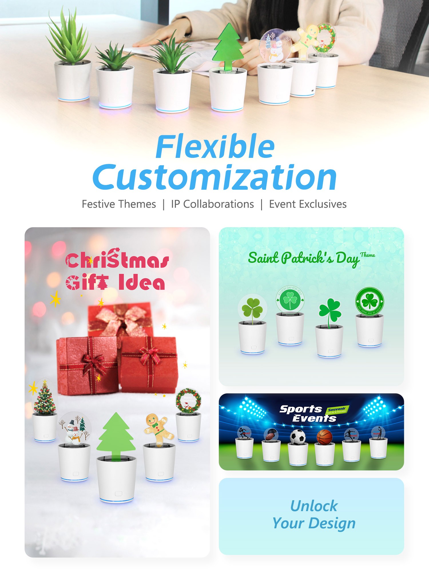 Customizable for Christmas, St. Patrick's Day, events & more.